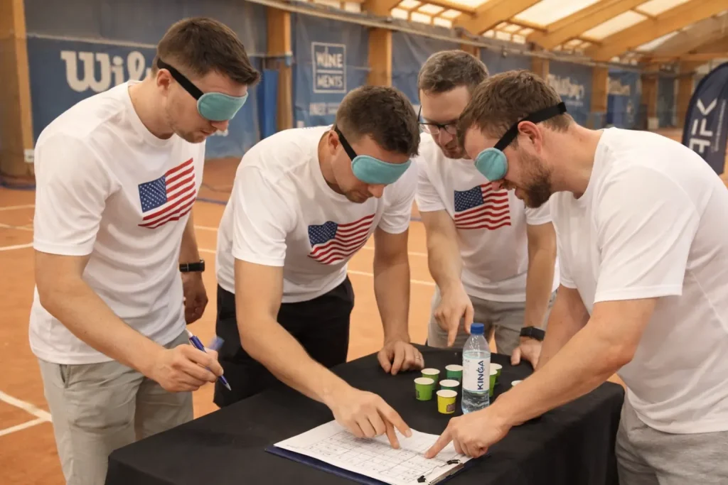 Nie daje, bo w wielu firmowych eventach nic nie zmusza ludzi do realnego wejścia we współpracę. Część osób siada przy swoim stoliku, część trzyma się działu albo znajomych z pracy, a reszta po prostu „jest obecna”. W praktyce zespół spędza czas obok siebie, ale nie ma powodu, żeby działać razem, podejmować decyzje, dzielić role czy rozwiązywać coś wspólnie.